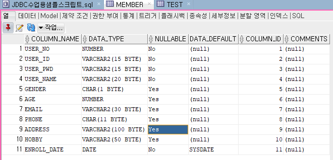1. oracle 의 MEMBER 테이블을 참조하여 이클립스 Model.vo 패키지에 Member 클래스 생성