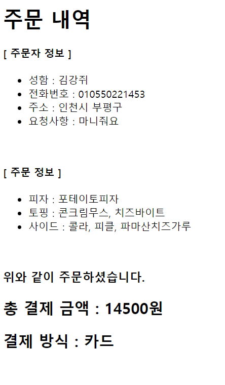 <h2>결제 방식 : <%=payment.equals("card")? "카드":"현금" %></h2>
