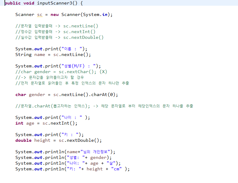 -sc.nextLine(): 값을 가져온 후 '엔터'를 비워주는 역할
