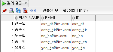 SELECT EMAIL ,INSTR(EMAIL, '_',1,1)" _위치",INSTR(EMAIL,'@')"@위치"
